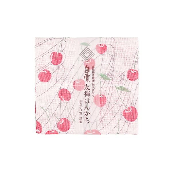 白雪友禅はんかち / さくらんぼ / あか