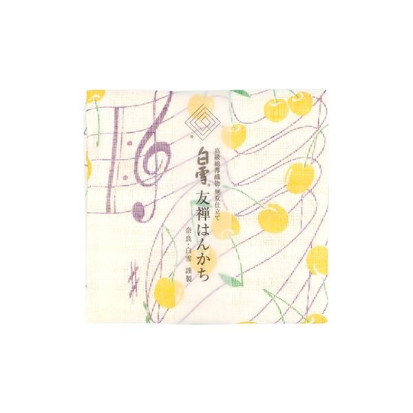 白雪友禅はんかち / さくらんぼ / きいろ