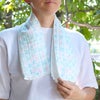 さらりとした使用感で、首に巻いてもゴワつかず、汗拭きにも好評です。