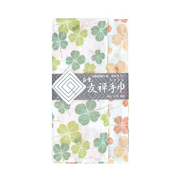 白雪友禅手巾 / クローバー / 若葉 + 柿色