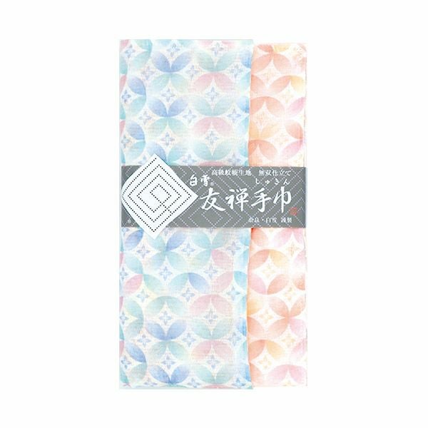 白雪友禅手巾 / 七宝柄 / 天色(ブルー) + 桃花色(ピンク)