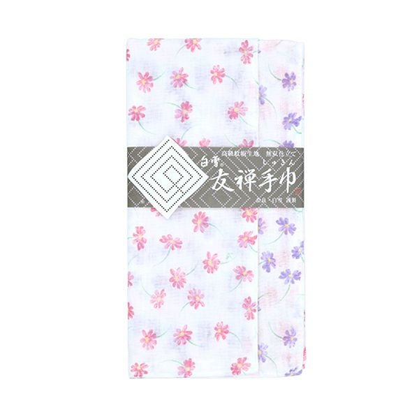 白雪友禅手巾 / 秋桜 / ピンク + パープル