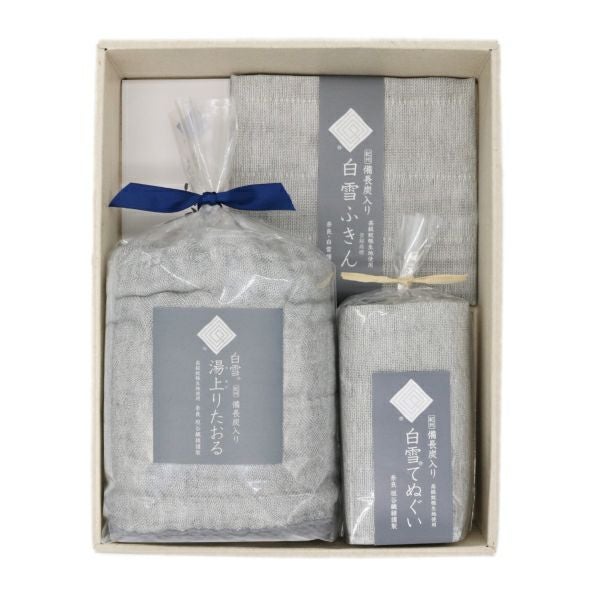 白雪備長炭バラエティ3点セット(備長炭入り/ふきん・てぬぐい・バスタオル)